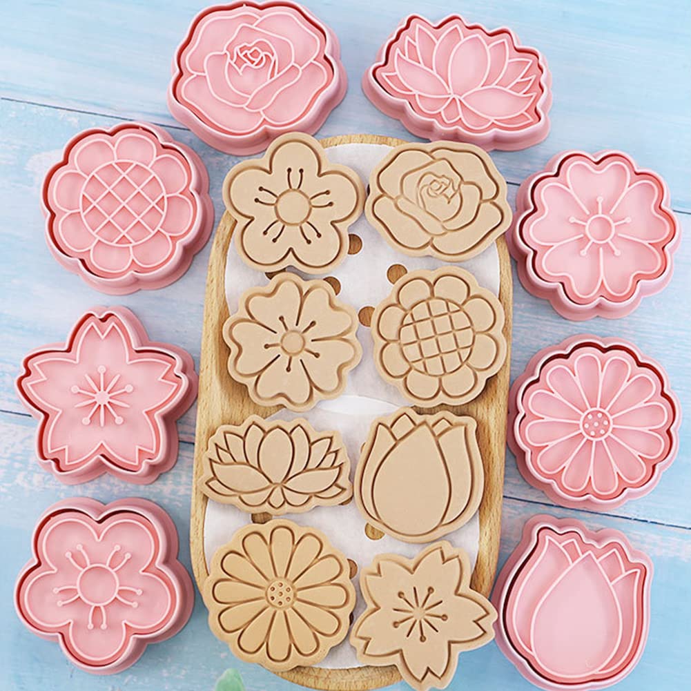 Formemory クッキー型 3D クッキング抜き型セット 8点セット クッキー型抜き 製菓 キッチン 製菓用品 プレスタイプ キッチン お弁当 手作り 誕生日プレゼント 贈り物 専用パッケージボックス付き (花 クッキー型 8個セット)