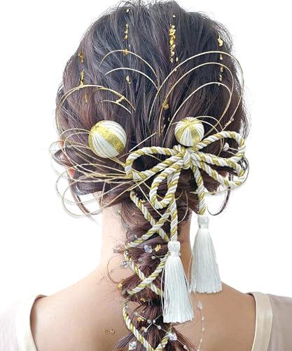 [JZOON] 髪飾り 成人式 水引 金箔 銀箔 組紐 人気 ロープ ゴールド シルバー ヘアアクセサリー 前撮り 振袖 卒業式 結婚式 和装 袴 着物 浴衣に ブライダル 花嫁 ヘッドパーツ J0030