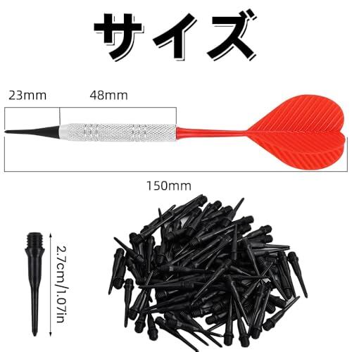 【製品仕様】:ダーツセットの標準重量は14グラムで、ダーツケース、フライト、シャフト、ポイントがそれぞれ12個ずつ含まれています。プラス100ダーツヘッド。
