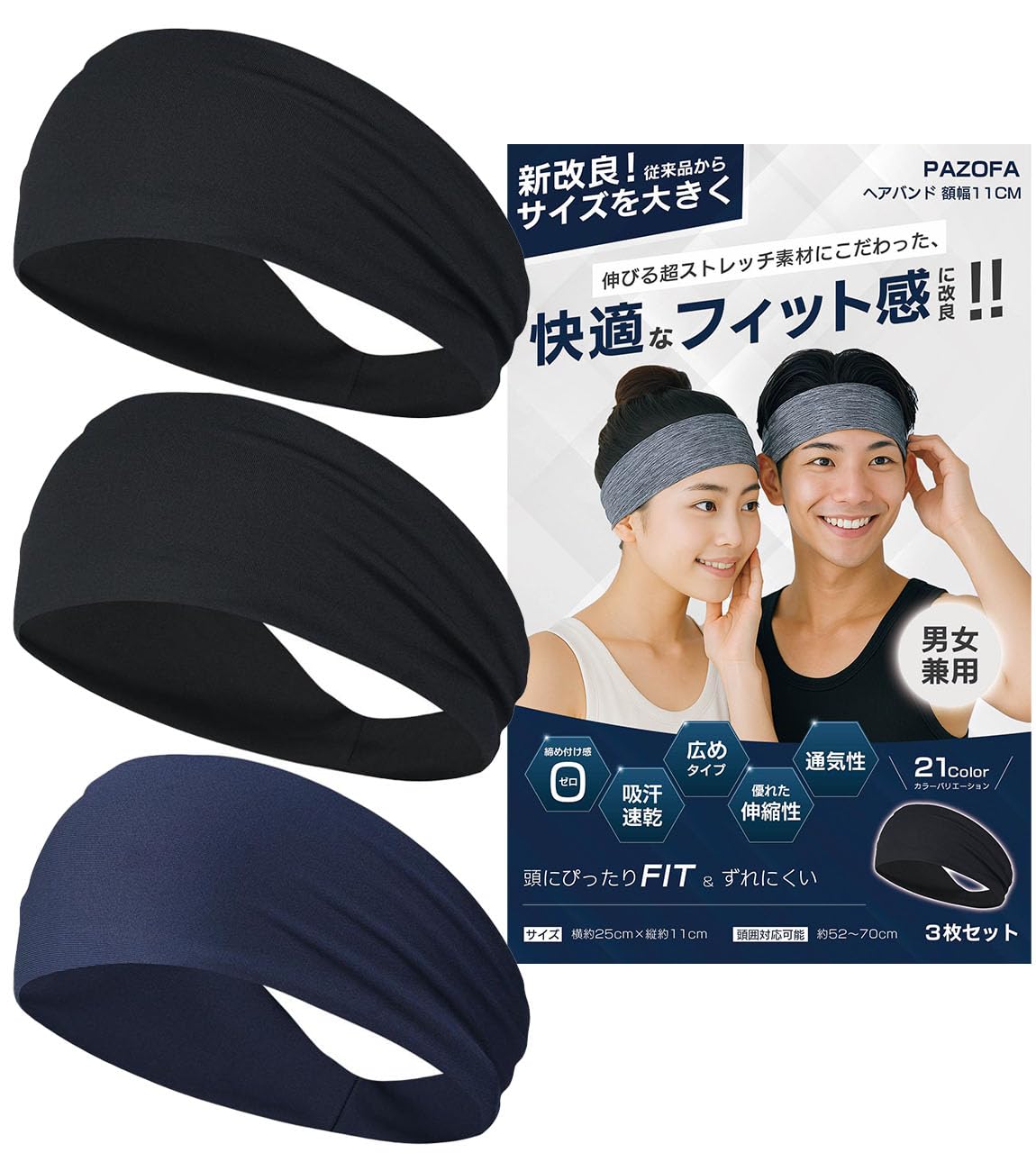 ■【ヘアバンド仕様】 素材は88%ポリエステル、12%ポリウレタンの薄てタイプのヘッドバンド3枚セット。サイズ: 約25cm×約11cm(フリーサイズ) 着用する時締め付け感がなくて、完璧的にあなたの頭をフィットしています。頭囲45~60cmに適しています。メンズ、レディース通用できます。