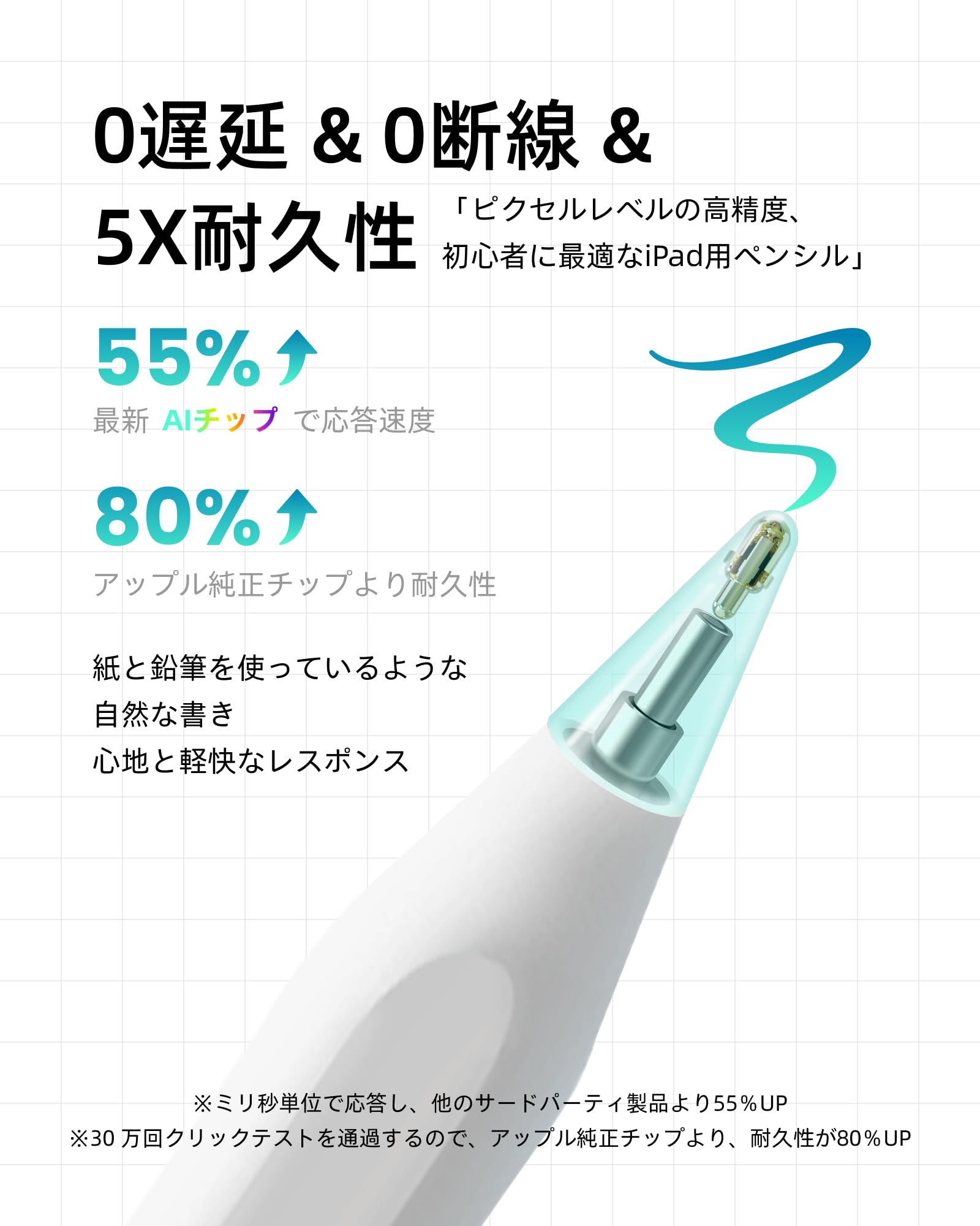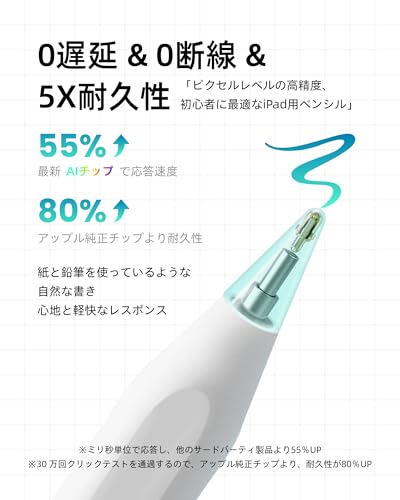 【最高の初心者向けiPad ペンシル& 傾き感知機能】新時代の高効率学習・オフィスツール!学生・初心者・頻繁に書き込み方に適した iPad ペンです。Metapen iPad タッチペンは、従来品と比べて反応が鈍い・途切れることなどの問題を解決し、真の真の遅延ゼロ・断線ゼロを実現しました。傾き感知機能を搭載し、鉛筆のように線の太さや濃淡を調節できます。Metapenを利用して、気軽にドキュメントを描画、ペイント、マークアップすることができます。