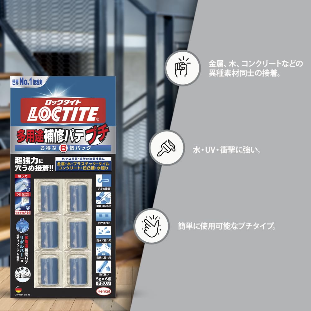 LOCTITE(ロックタイト) 多用途補修パテ プチ6個パック - 補修・充填・接着用エポキシパテ、成形可能接着剤 - 5g×6 DEP-030