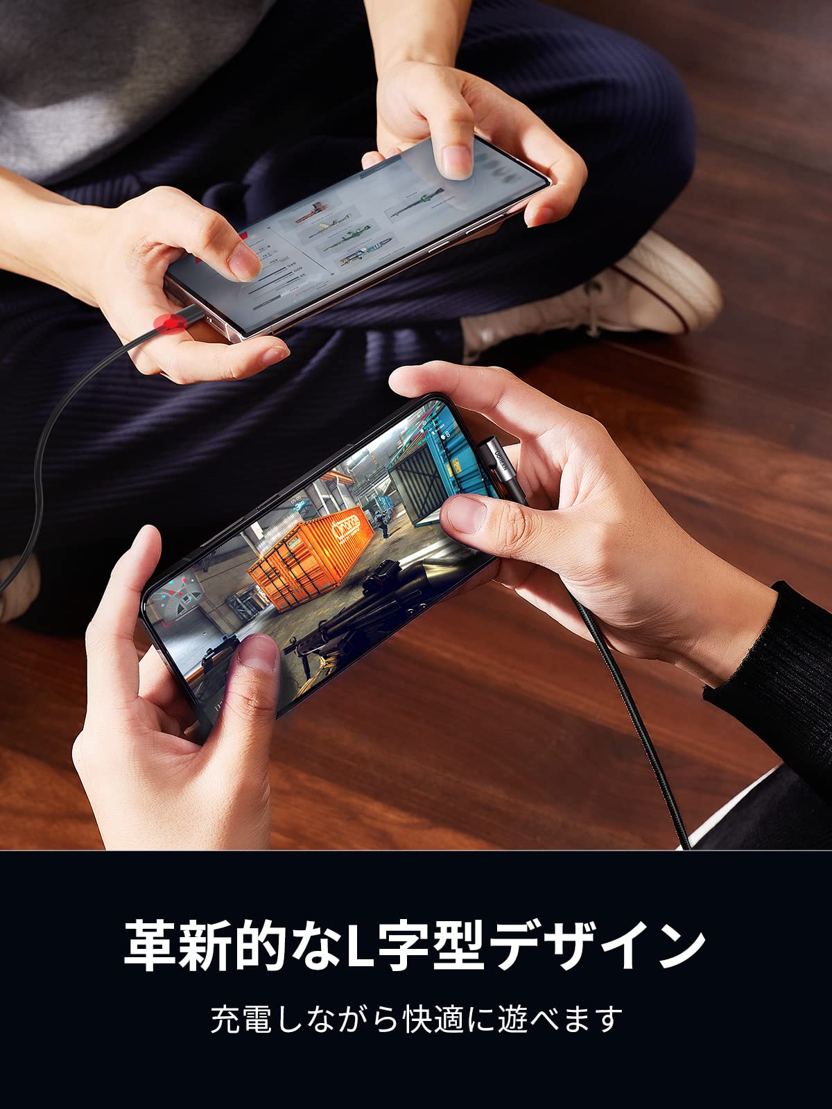 【90度アングル設計】USB CコネクタがL型デザインを採用したので、充電しながらゲームをしたり、動画を見たりする際、コネクタの接続部分が邪魔にならず、快適に楽しむことができます。また、過度に曲げることで断線や脱線を防ぎます。