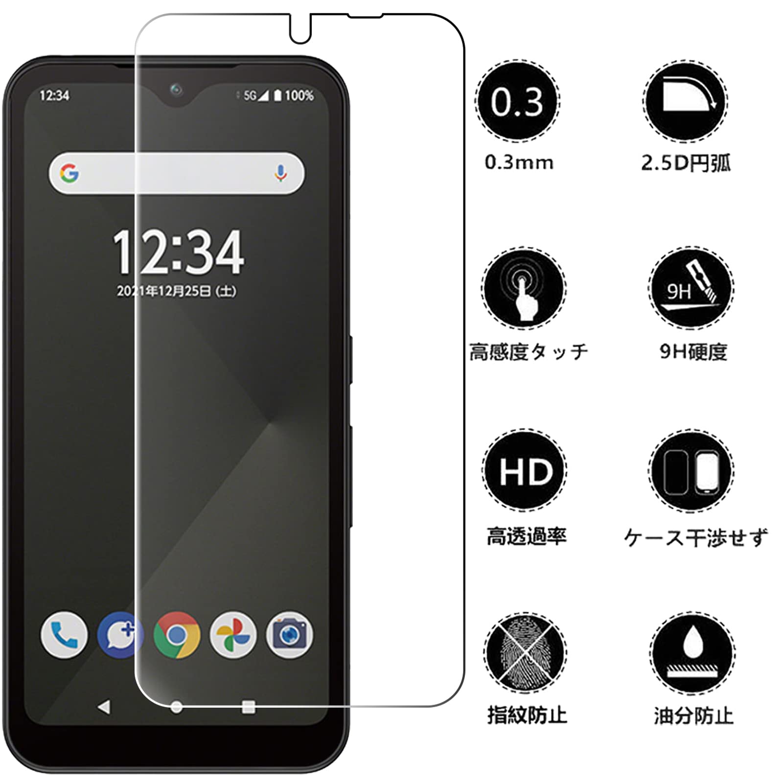 【表面硬度9H】カッターなどの鋭利なものを当たってもキズが付きにくくて高い強度を持ち表面硬度9Hが特徴です。ハードコーティング技術は、衝撃を最小限に抑えて画面の破損を抑え、すり傷防止や指紋防止もしっかりとスクリーンを保護します。本体の端を完全に覆い、液晶画面を保護します。エッジの衝撃が軽減され、ガラス膜の耐久性も向上しました。万が一の破損時も飛散防止加工によって破片はフィルムに張り付いた状態で破片がほとんど飛び散らない安全性の高いガラスになっています。
