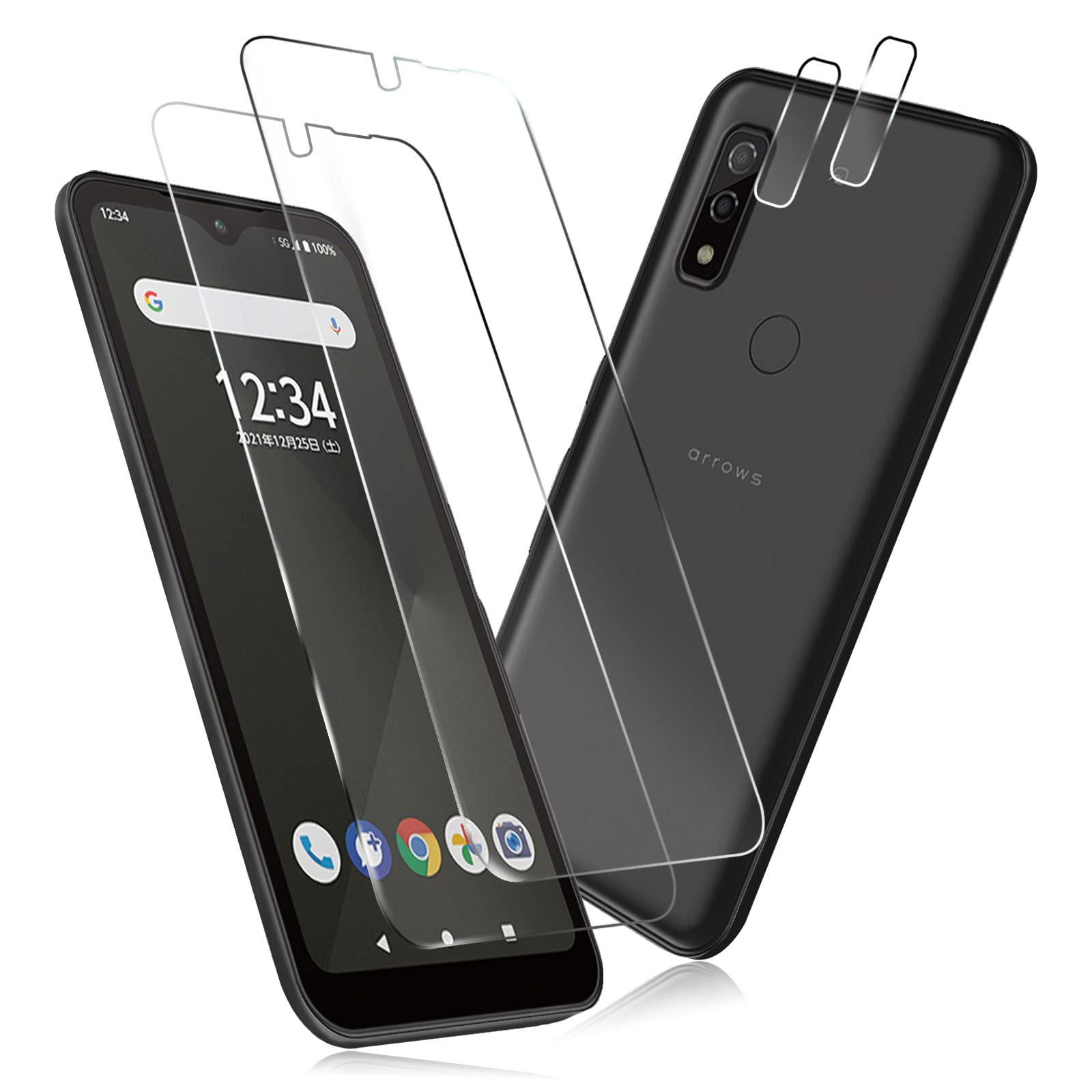 【4枚セット】2枚 FOR Fujitsu arrows We F-51B / FCG01 用のガラスフィルム + 2枚 FOR arrows We F-51B / FCG01 用の カメラ フィルム 超薄型 強化ガラス 保護フィルム FOR arrows We F-51B / FCG01 用の旭硝子製 高透過率 硬度9H 飛散防止 液晶保護フィルム PCduoduo