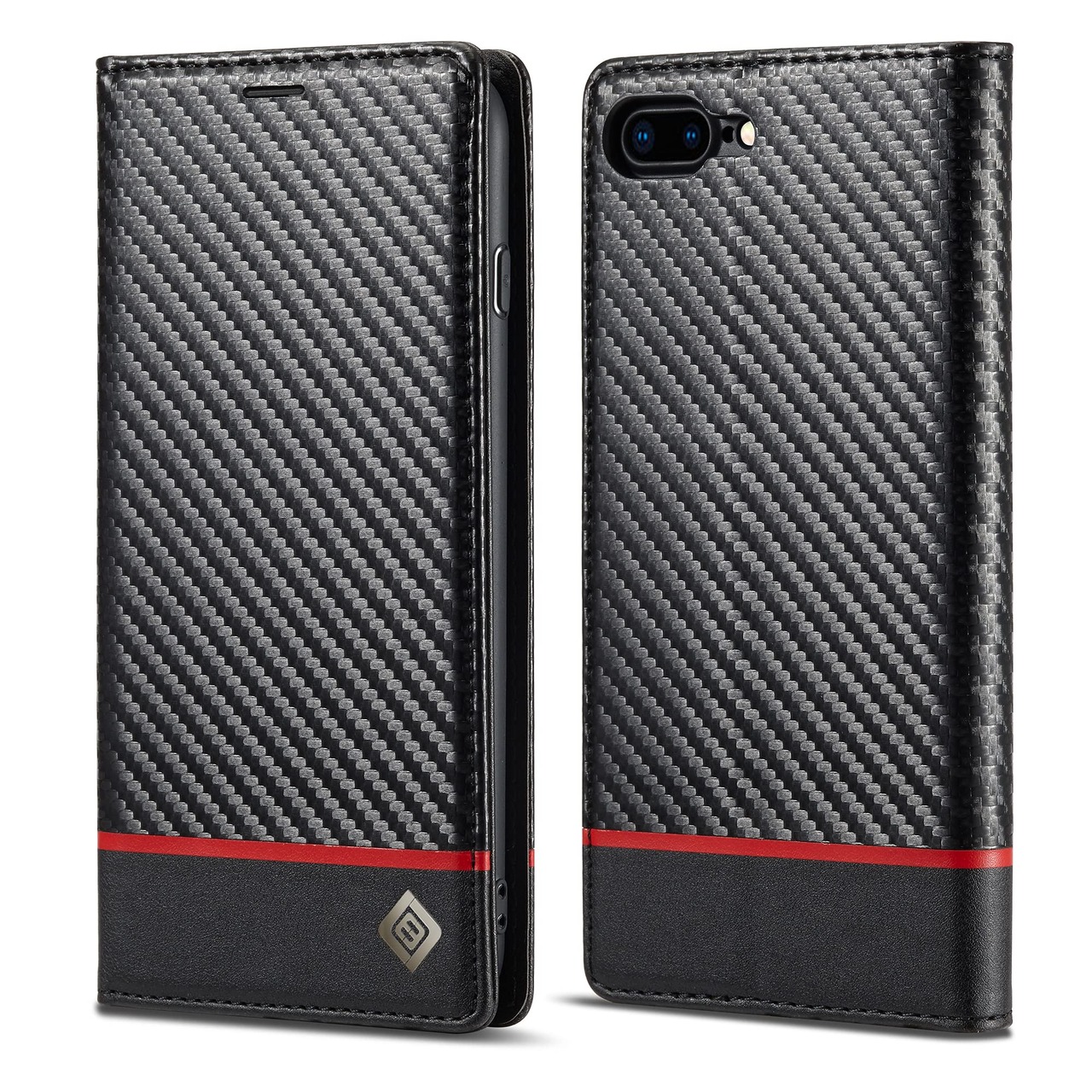 ZTOFERA ケース 用の iPhone SE3 / SE2 / 7 / 8 手帳型 マグネット式 スマホケース PU レザー おしゃれ カード収納 人気 スタンド可能 耐衝撃 頑丈 全面保護 財布型ケース エレガント 上品 耐久性 便利 炭素繊維テクスチャ スマホケース(赤い横線)