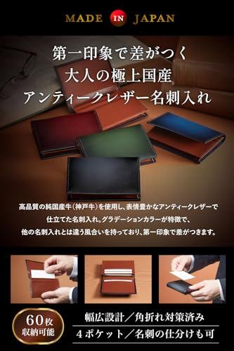 【日本製/大人の国産アンティークレザー名刺入れ】高品質の純国産牛(神戸牛)を使用し、表情豊かなアンティークレザーで仕立てたメンズ本革名刺入れ。グラデーションカラーが特徴でスタイリッシュで高級感があり、他の名刺入れとは違う風合いを持っており、第一印象で差がつきます。