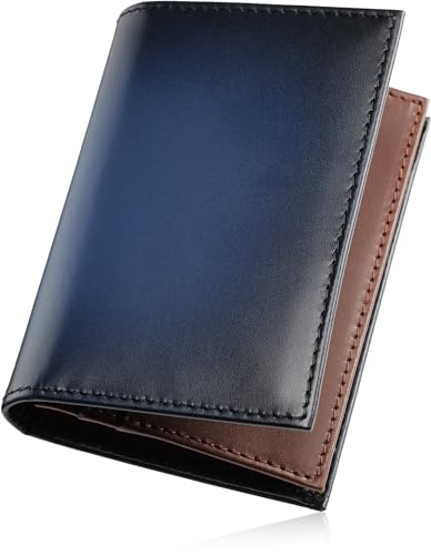 [東京下町工房] 名刺入れ メンズ 本革 【職人仕上げ国産】 幅広タイプ 日本製 大容量 アンティークレザー (ネイビー)