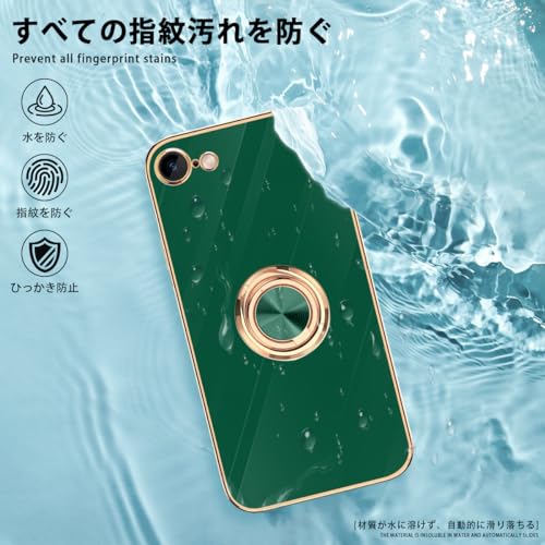 danliangqifei iPhone SE ケース iPhone第3世代カバー 第2世代 スマホケース アイフォン SE3/SE2 リング 耐衝撃 360°回転 スタンド機能 車載ホルダー対応 保護カバー レンズ保護 ストラップホール付き 4.7イン(グリーン)