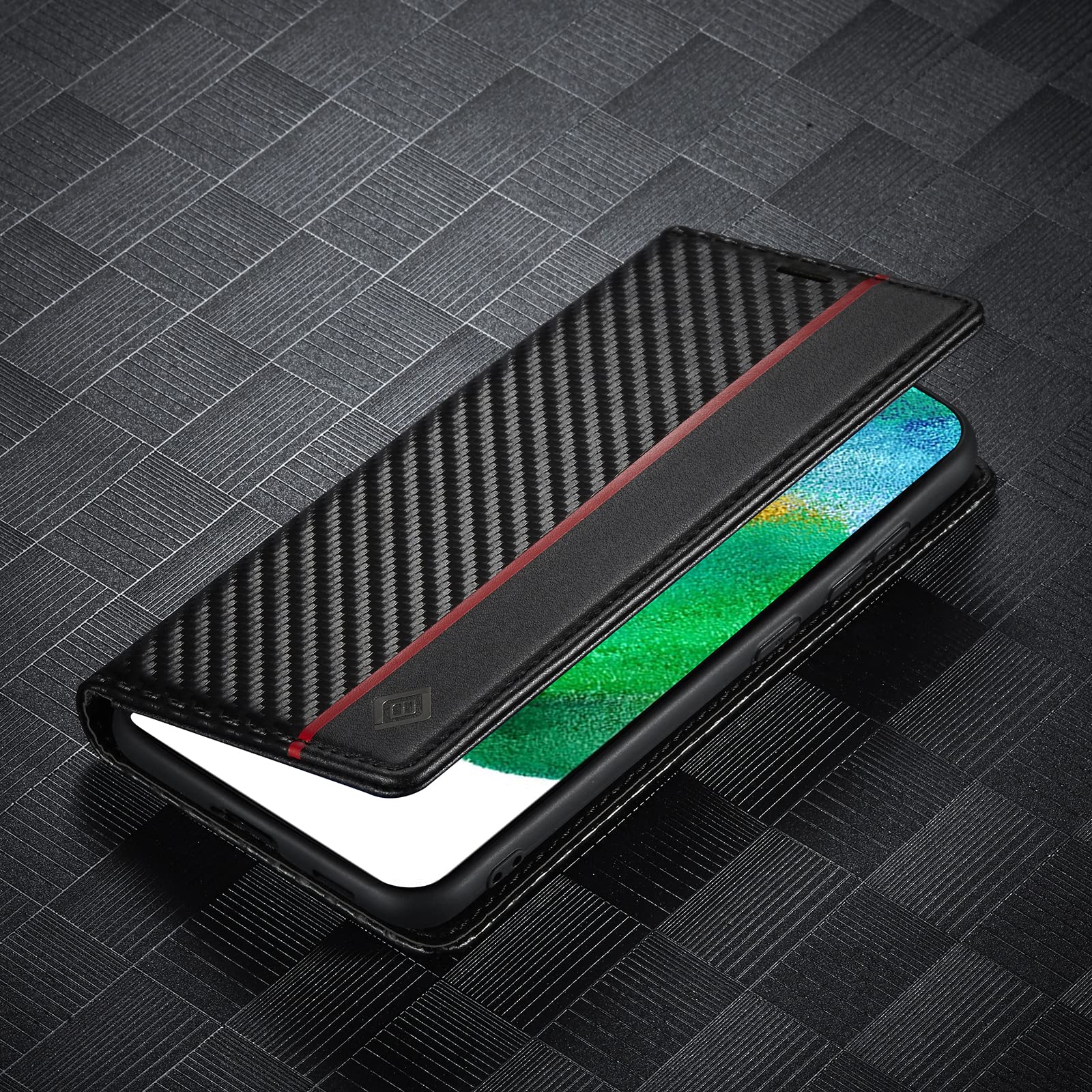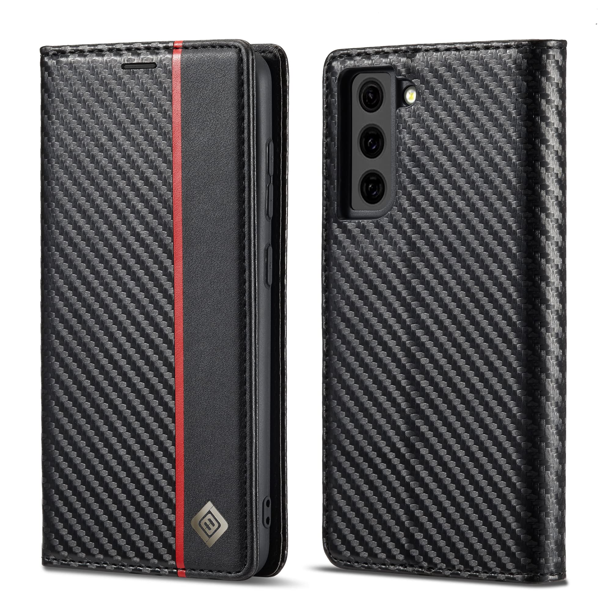 ZTOFERA Samsung Galaxy S21 5G ケース 手帳型 Galaxy S21 ケース 手帳型 マグネット式 サムスンギャラクシー S21 スマホケース PU レザー おしゃれ カード収納 人気 スタンド可能 耐衝撃 頑丈 全面保護 財布型ケース エレガント 上品 耐久性 便利 炭素繊維テクスチャ スマホケース(赤い縦線)