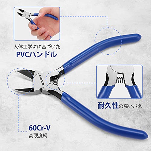 WORKPRO ニッパー プラスチックニッパー 130mm ミニニッパー バネ付 小型ニッパー 精密ニッパー 斜めプライヤー ワイヤーニッパー 軟鉄 銅線切断に DIY手作り プラモデル 手工業職人用 模型専用 繊細な作業工具