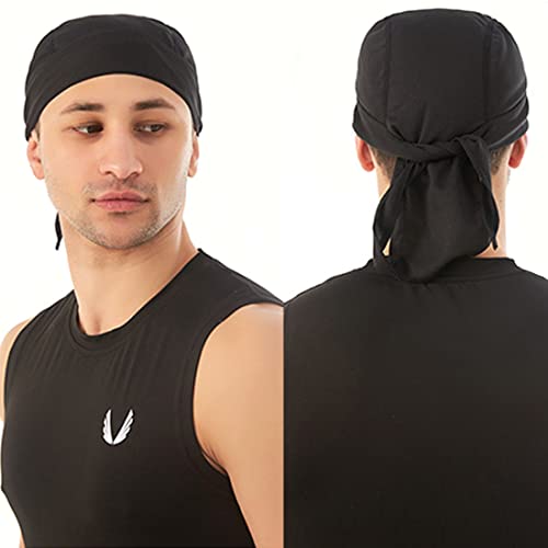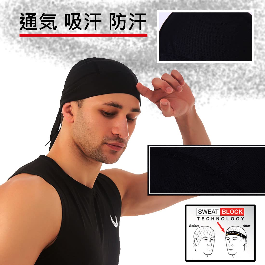 [Trifong] 海賊 バンダナ 速乾 吸汗 帽子 汗止め バンダナキャップ メンズ 通気素材 ドゥーラグ スカルキャップ 熱中対策 バンダナ 抗紫外線 野外活動 ばんだな UVカット (ブラック)