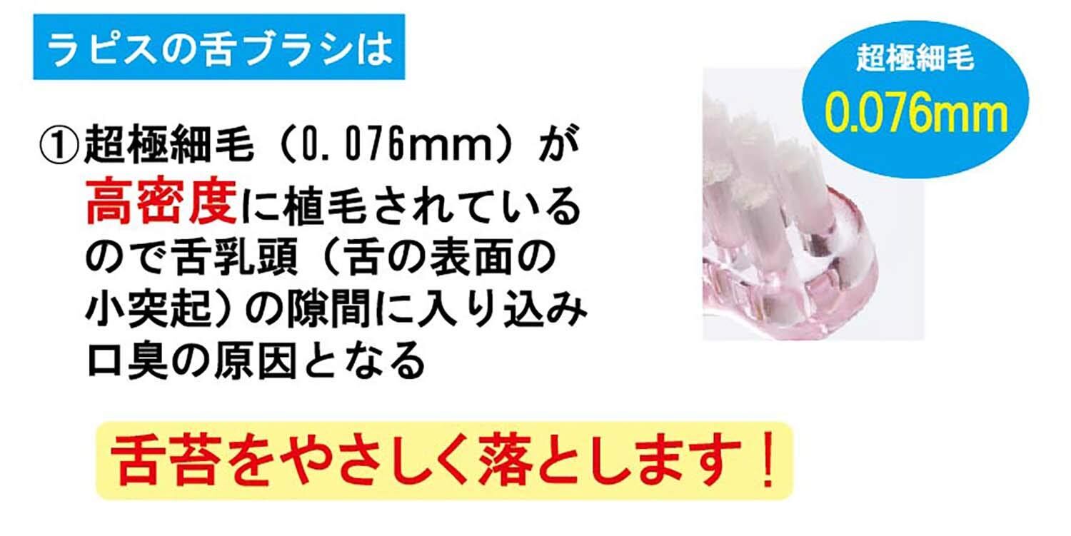 特にやわらかい毛を使ってますので、舌苔の汚れをやさしくかき出せます