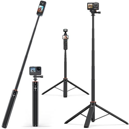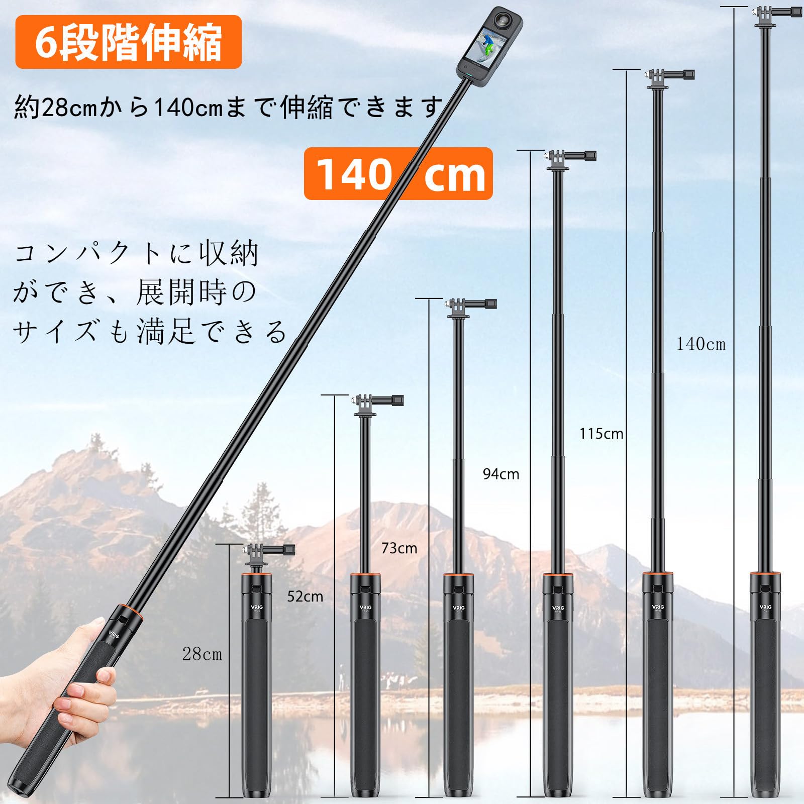 VRIG insta360 自撮り棒 アクションカメラ 三脚 140cm延長 6段階伸縮延長ポール 自撮り棒 コンパクト 持ち運び便利 DJI osmo nano、 Osmo Action 6/5 pro/4/3、DJI Osmo Pocket 3、Insta360 go ultra /X5/X4/X4 air/Ace Pro/Ace Pro 2、GoPro など対応 TP-21