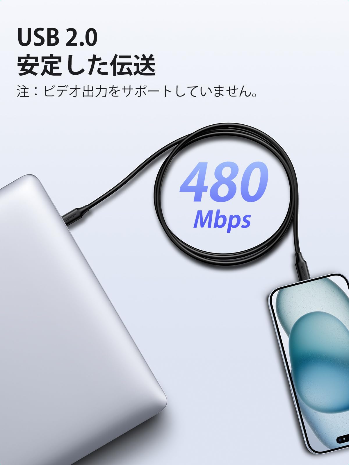 【優れた高耐久性】10000回以上の折り曲げに耐えうるまでに強化され、圧倒的な持続力を持ちます。厚みのあるTPEの外装、優れた性能、柔らかく、酸化防止、長期間の使用にも耐えられる断線に強い超タフUSB Type-Cケーブルです。日常の摩耗に対する効果的に抵抗する。
