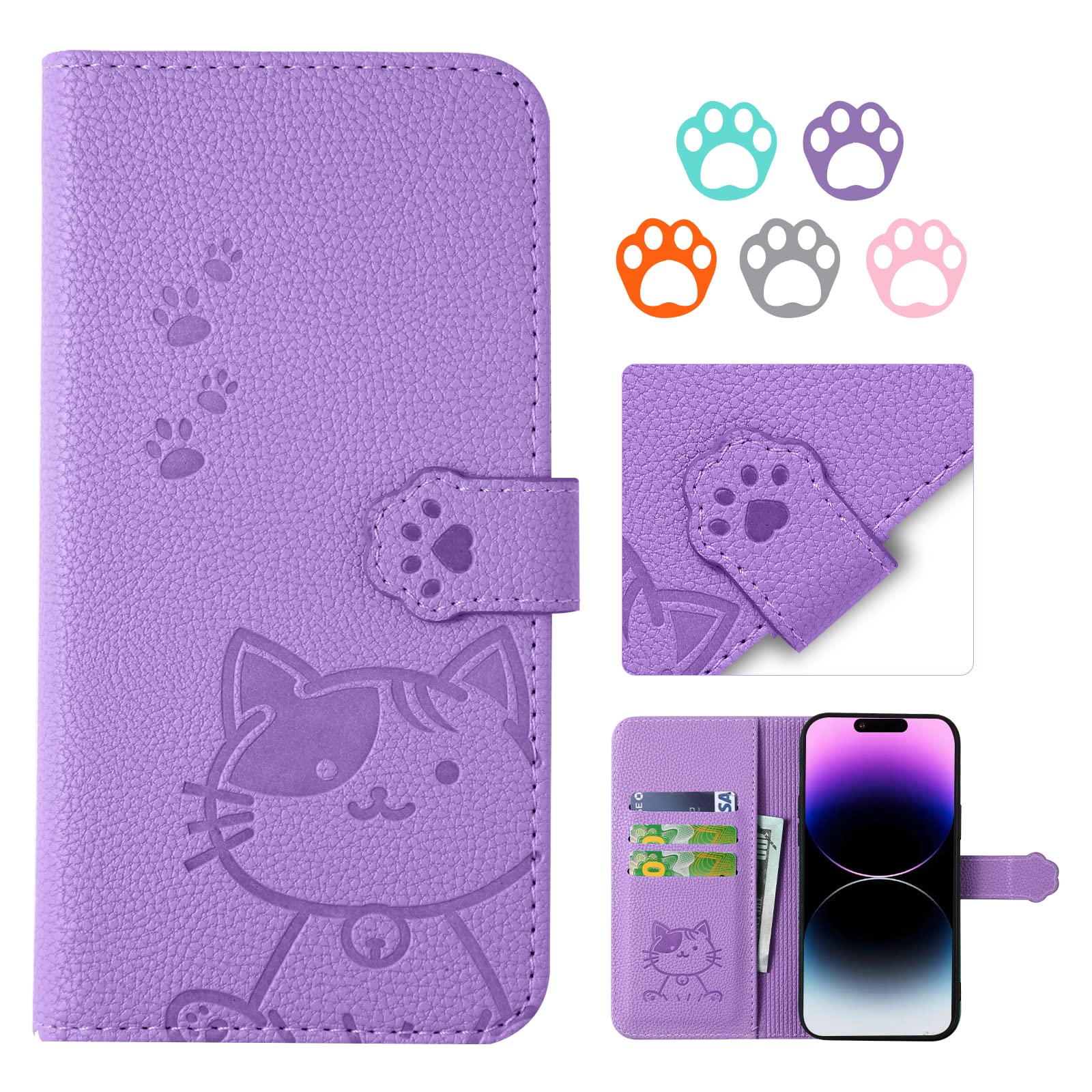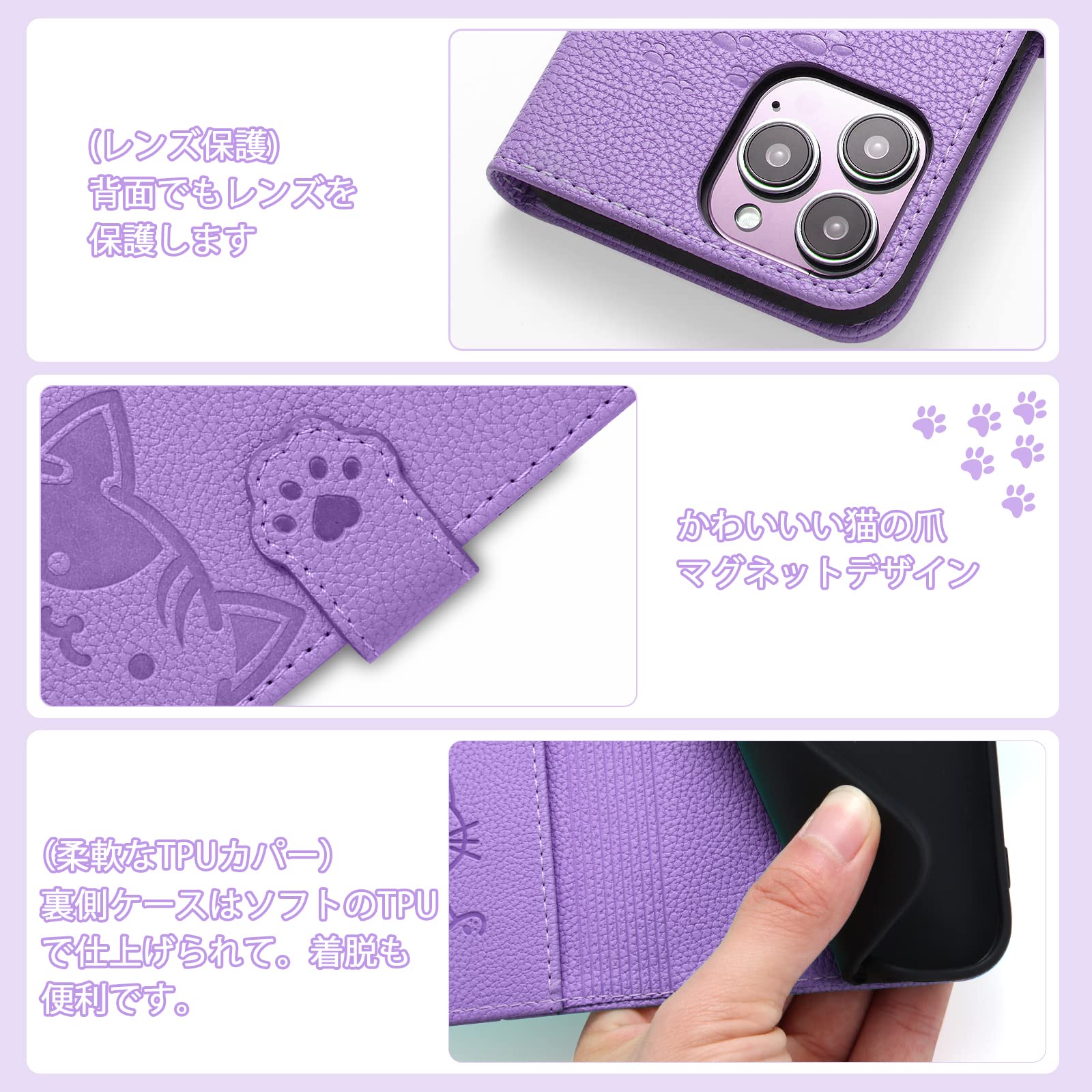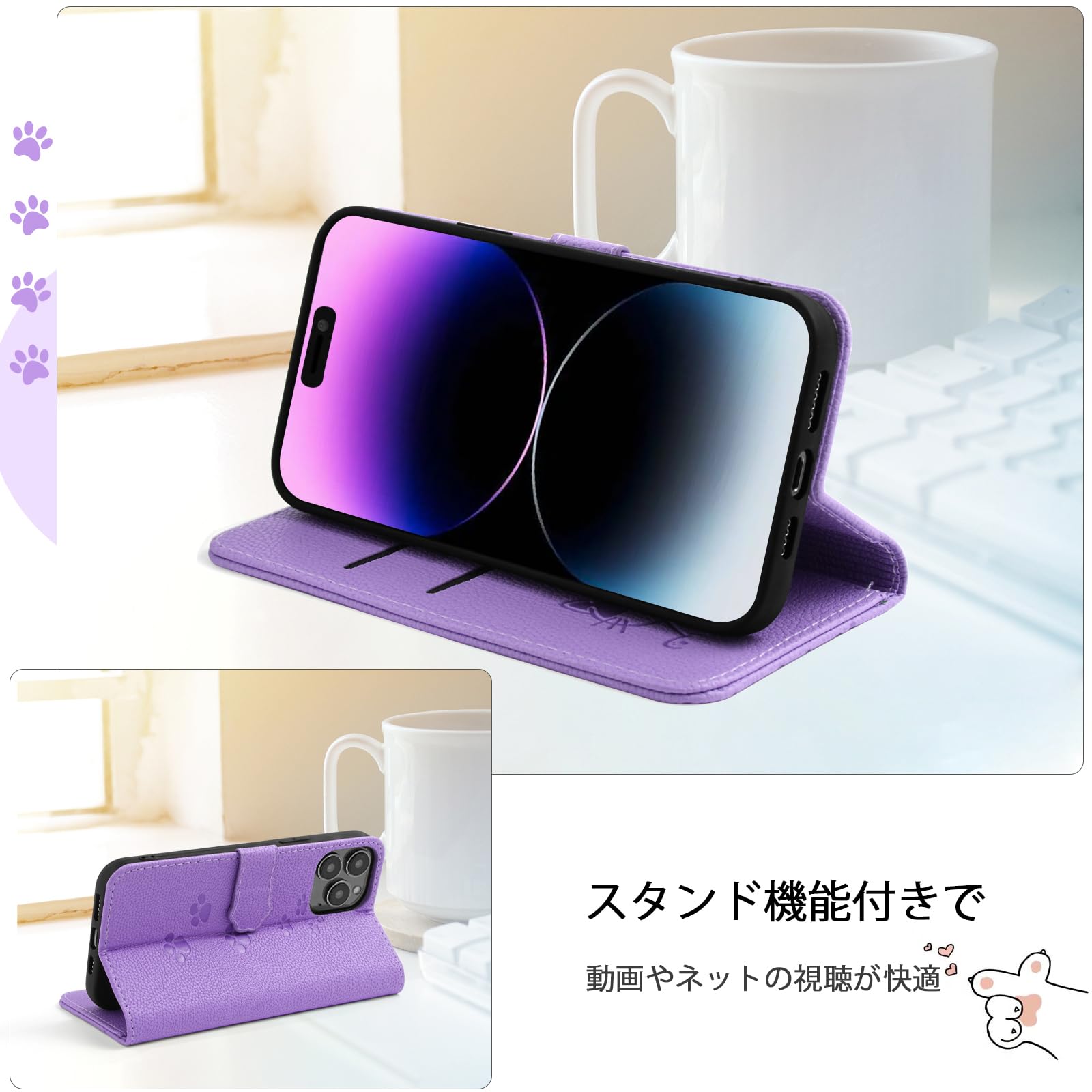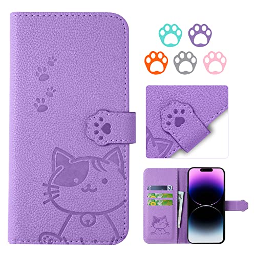 【YIMASE 対応 iPhone 15 ケース 手帳型 】アイフォン15 ケース 手帳型 iPhone 15 スマホケース タッチ快適な あいふぉん15 カバー あいふぉん15 ケース すべてのコントロールと機能に正確かつ簡単にアクセス iPhone15 カバー スタイリッシュでかわいい猫柄の iPhone 15 カバー 衝撃吸収 iPhone 15 と互換性があります[6.1インチ、パープル]