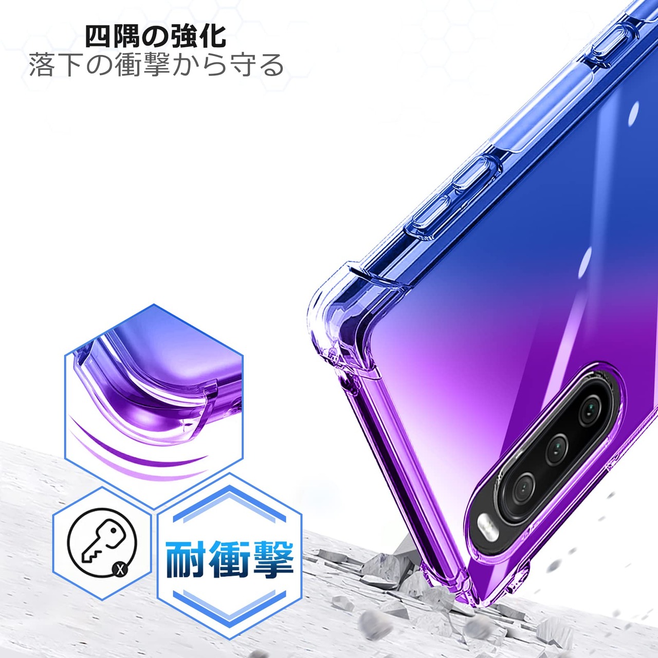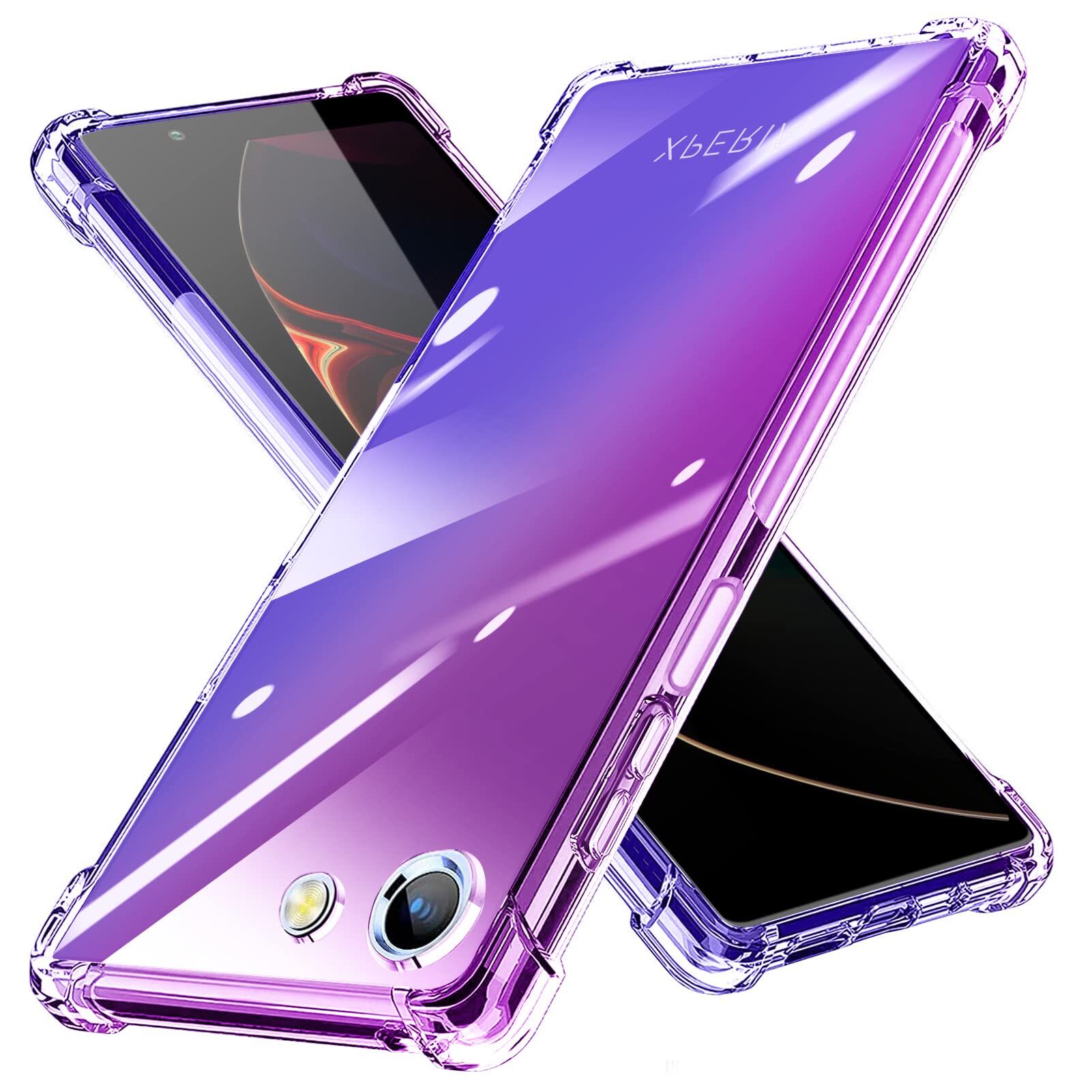 Xperia Ace ケース 耐衝撃 クリアSO-02L カバー クリア TPU 薄型 軽量 滑り止め 黄変防止 柔軟 Qi充電 衝撃吸収 指紋防止 米軍MIL規格取得 ワイヤレス充電に対応 カメラ保護 カバー 紫+青 331-Xperia Ace-04