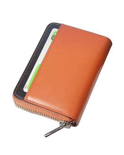 LUOLUO クレジットカードケース 栃木レザー メンズ カードケース カード入れ スキミング防止 本革 大容量 じゃばら コインケース YKKファスナー レッド (ブラウン/ブラック)