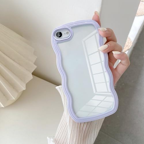 UEEBAI 対応 iPhone 7/iPhone 8 用の ケース ソフト TPU カバー 可愛い おしゃれケース 透明 ウェーブ デザイン スマホケース ワイヤレス充電対応 軽量 薄型 耐衝撃 人気 波型 バンパー スマホケース - パープル