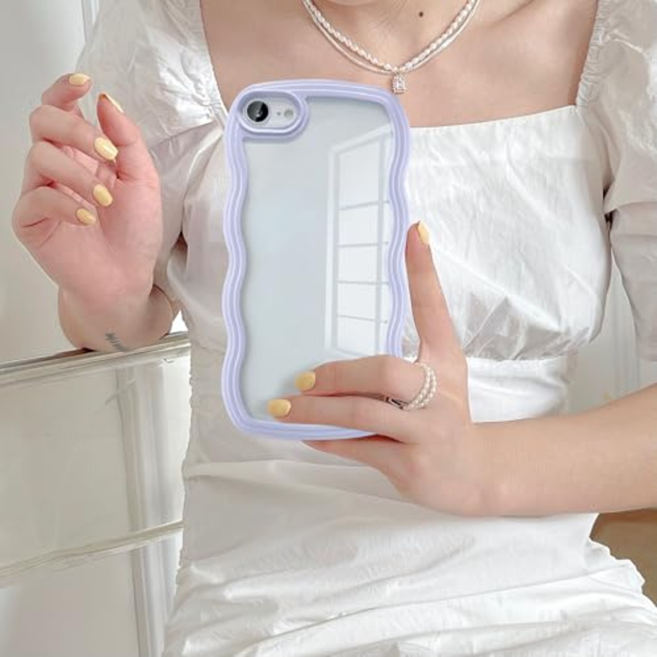 【精密なカットアウト】 UEEBAIソリッドカラーススマホケース、クリア可愛いウェーブシェイプスマホケース完全に精密なカットアウトである。正確なカットアウトと反応するプレスボタンは、すべてのポート(カメラ、スピーカー、マイクなど)にアクセスするためにスマホカバーを簡単にします。