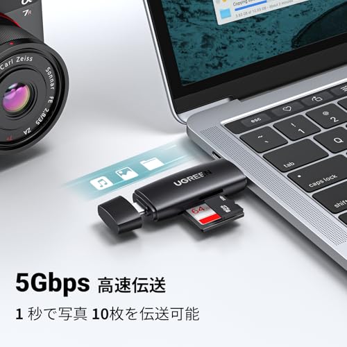 UGREEN SDカードリーダー Type-C OTG対応 1台2役 USB3.0 Microsd 2TBまで大容量カードに対応 Android スマホ タブレット、MacBook、Windows PCに適用