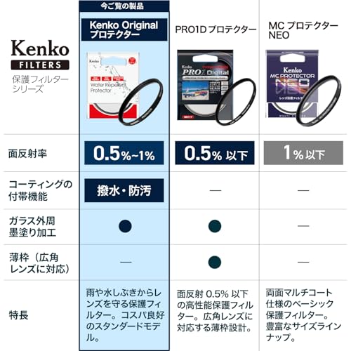 ケンコー(Kenko) Original 撥水レンズプロテクター 55mm 撥水・防汚コーティング レンズ保護用 日本製 005156