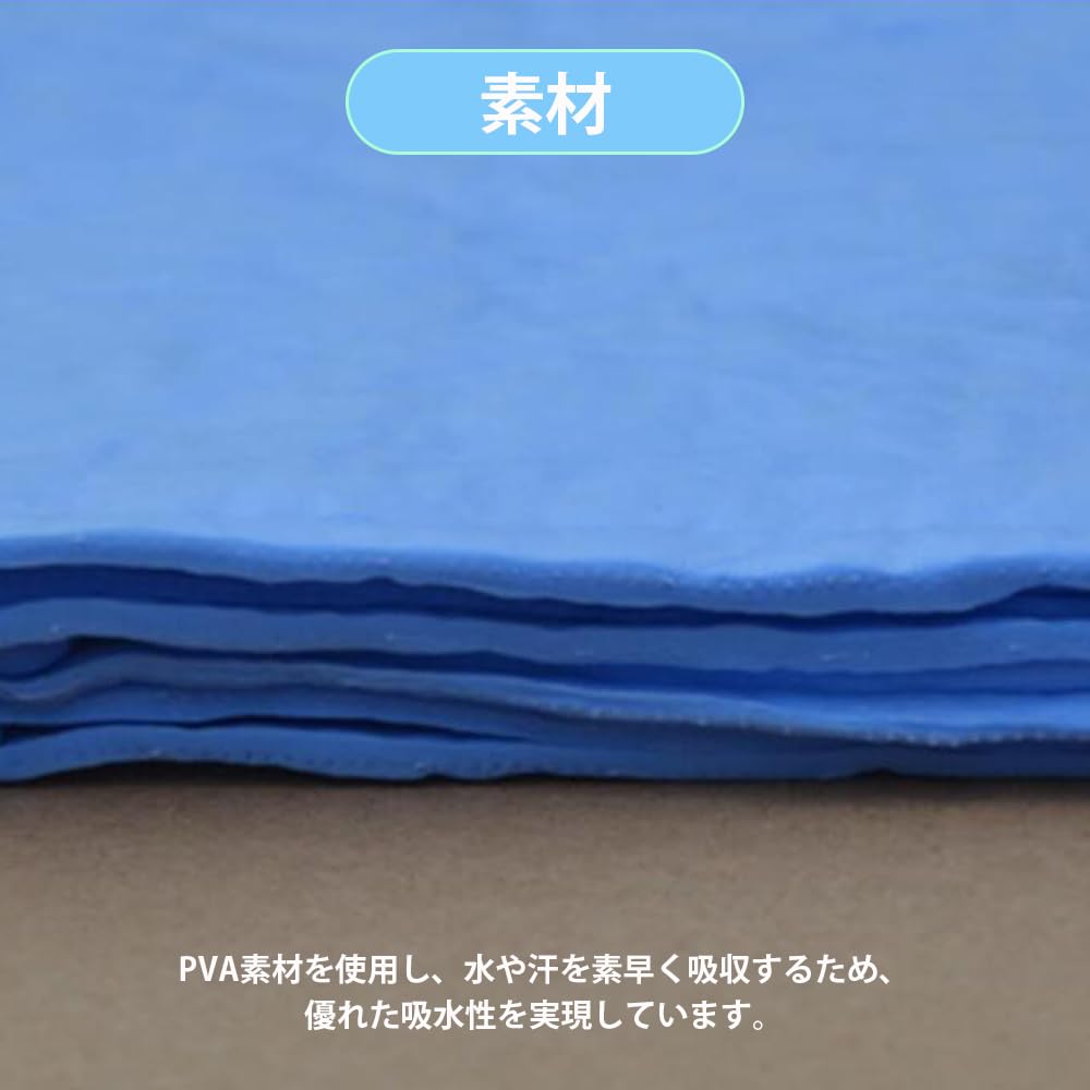 【素材】PVA素材を使用し、水や汗を素早く吸収するため、優れた吸水性を実現しています。