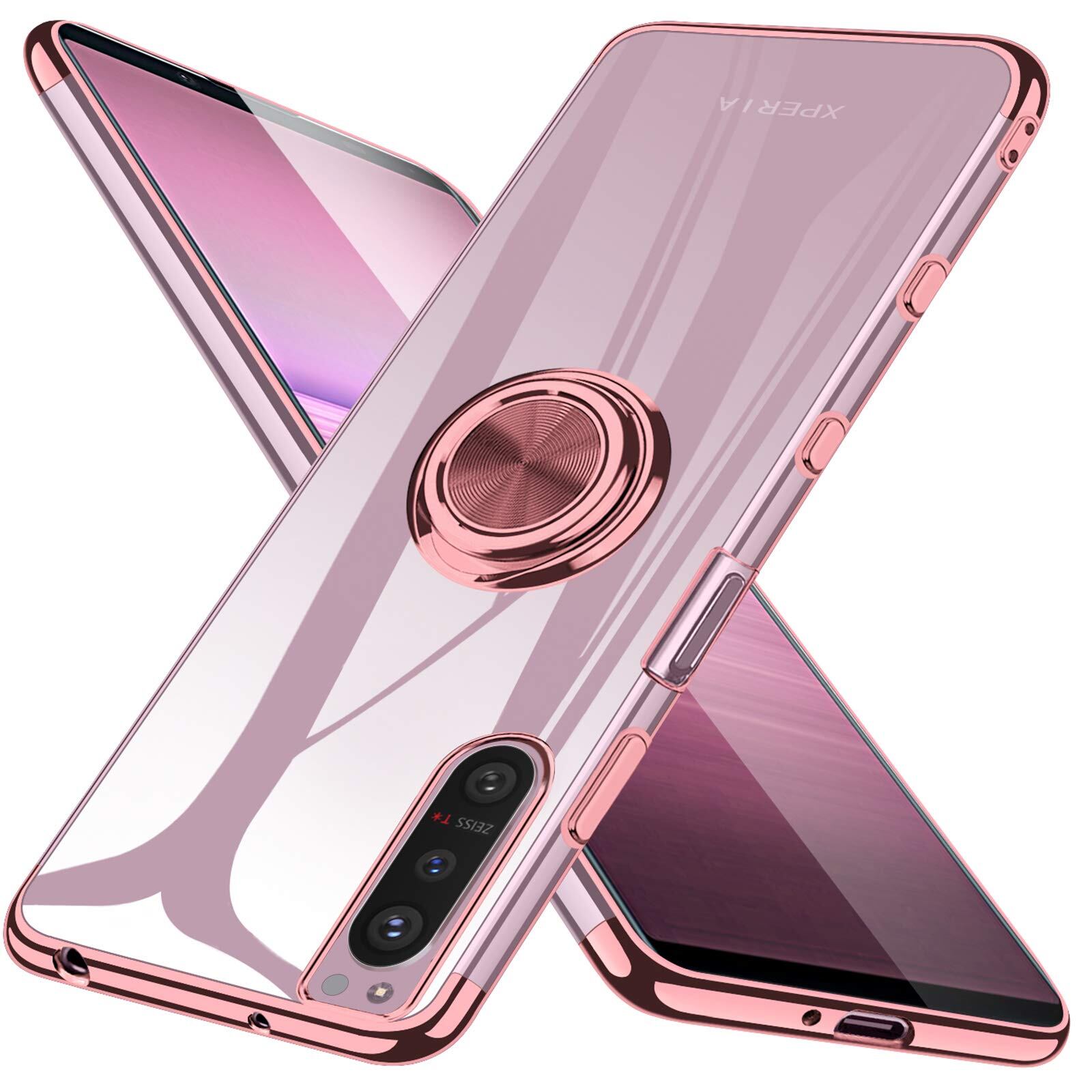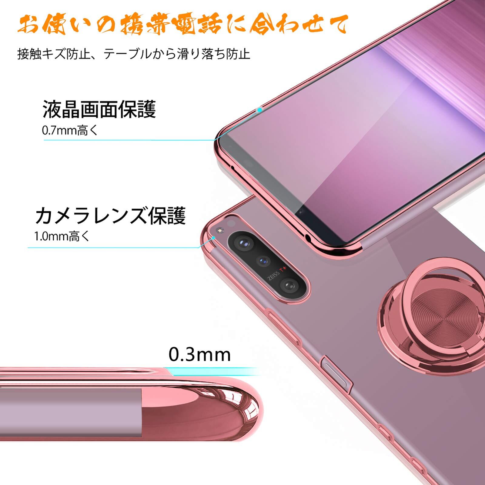 Xperia 5 II ケース SO-52A カバー リング クリア TPU 耐衝撃 透明 メッキ加工 SOG02 スマホケース 一体型 スタンド機能 車載ホルダー ストラップホール Sony エクスペリア5II ケース ローズゴールド
