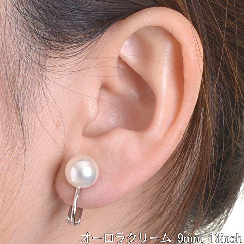 高級花珠オーロラ本貝パール9mmネックレス イヤリング ピアス セット 日本製 16インチ (オーロラクリーム & イヤリング)