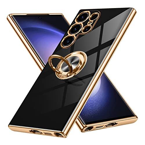 Galaxy S24 Ultra ケース リング付き Samsung ギャラクシー S24ウルトラ / docomo SC-52E / au SCG26 用 カバー Uovon スマホケース スタンド機能 薄い 車載ホルダー 対応 携帯カバー 軽量 ストラップ穴付き おしゃれ・ブラック