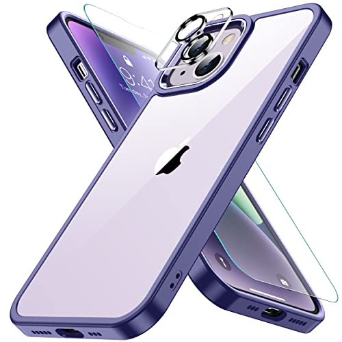 iPhone14 ケース パープル カメラレンズ保護付き 耐衝撃 黄ばみ防止 アイフォン14ケース 米軍MIL規格 耐久性 SGS認証 アイホン14 スマホケース ワイヤレス充電対応 あいふぉん14 カバー 6.1インチ