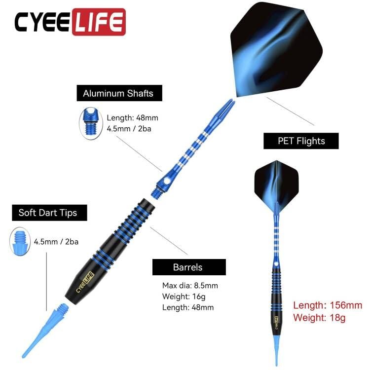 Cyeelifeダーツプラスティックチップソフトチップダーツセット12枚18 g 4色良質アルミニウム軸100個の追加ダーツヒント16個のダーツと2個の電子ダーツボードフライトプロテクターなど