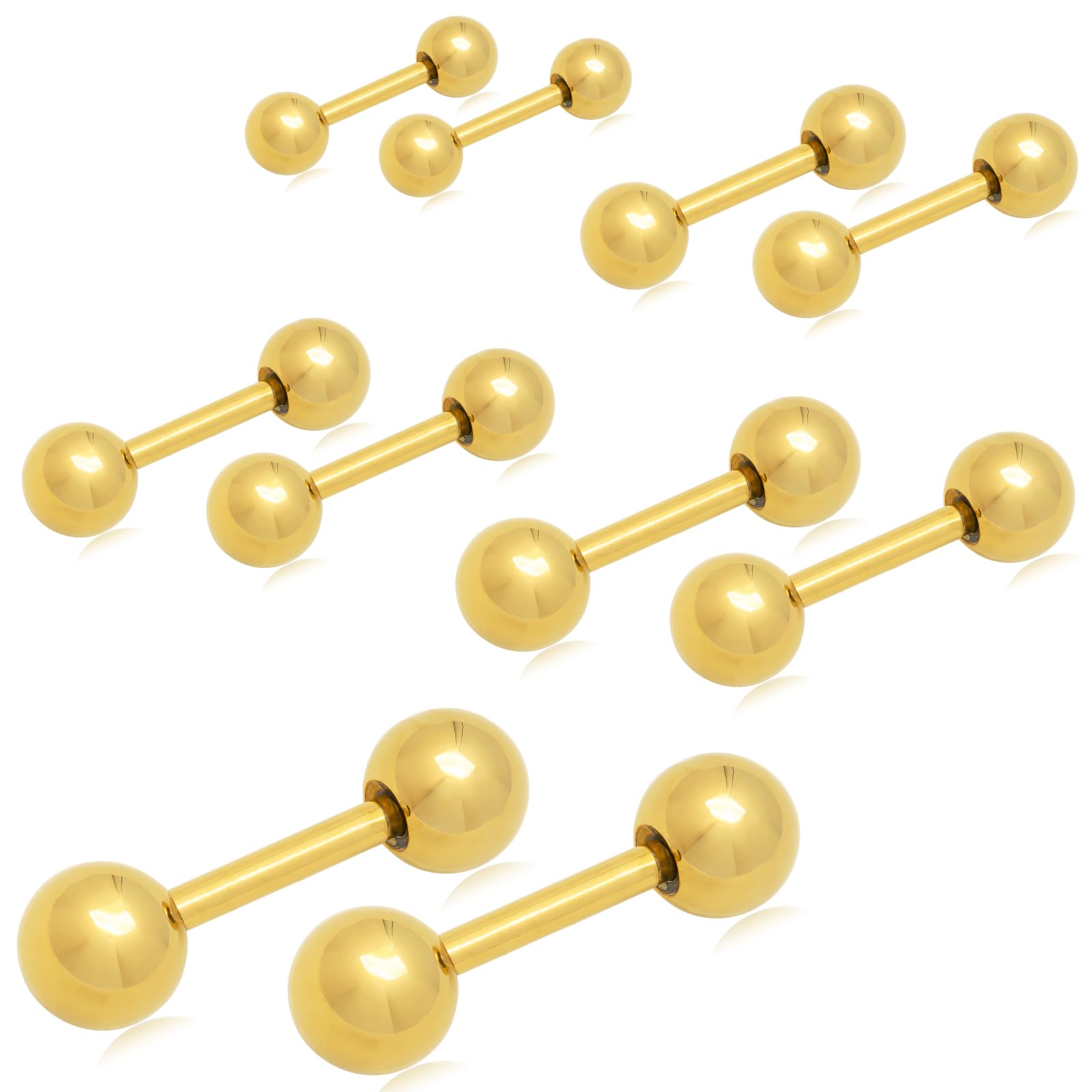 [Adelina Style] サージカルステンレス バーベル ボールピアス 丸玉 つけっぱなし 5ペアセット メンズ レディース 軟骨 ピアス 金属アレルギー対応 (ステンレス ゴールド 幅2.5・3・4・5・6mm 5セット)