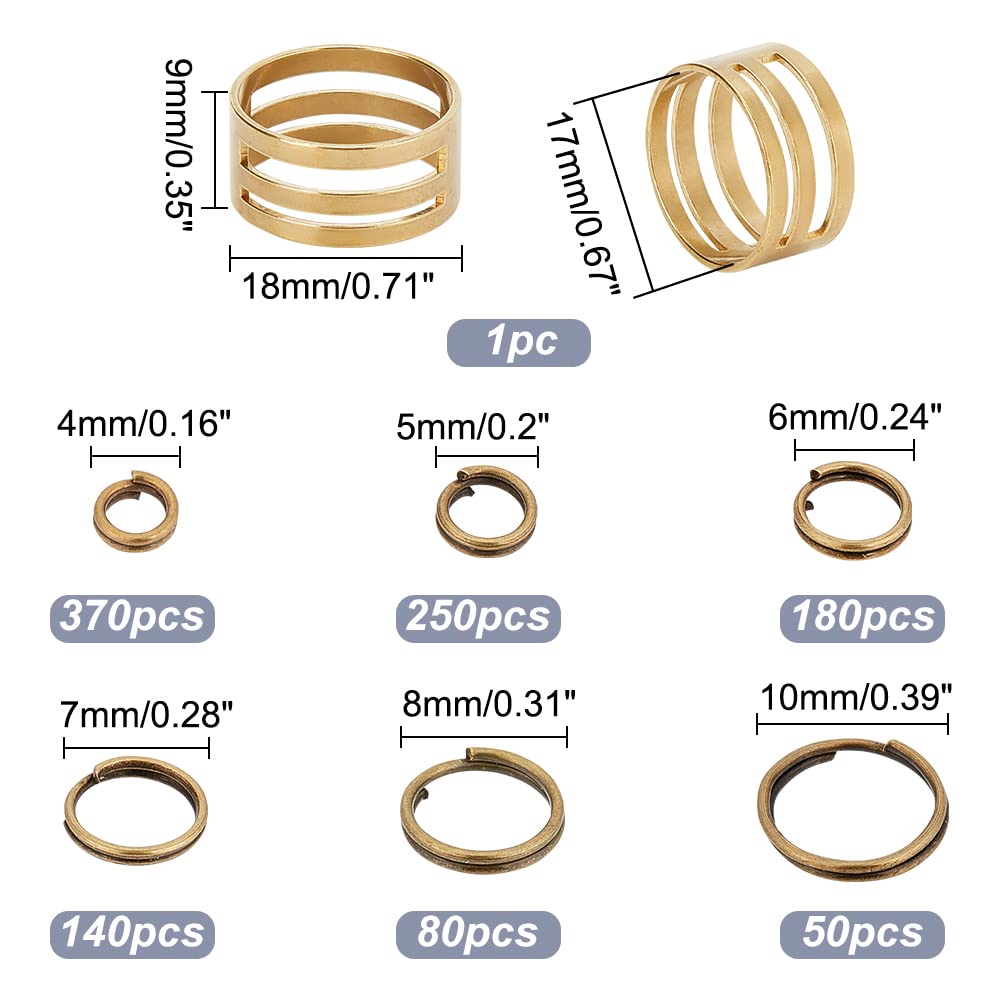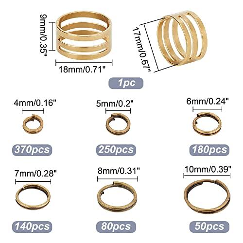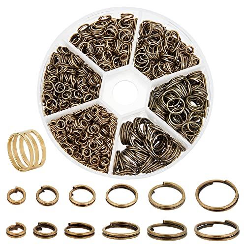 PH PandaHall 6種 鉄製 二重丸カン 4-10mm リング マルカン 丸環 指貫つき 金具セット 基礎パーツ ジュエリー DIY用 アンティークブラウン