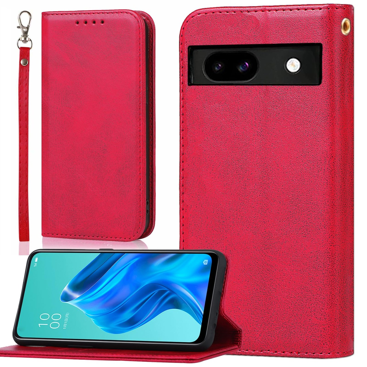 適用 Google Pixel 8a ケース 手帳型 グーグル ピクセル 8a ストラップ ケース ピクセル8a スマホケース Pixel8a 手帳 GooglePixel8a 手帳型ケース フリップケース Pixel8aケース 【BonwFzin】 PU レザー ストラップケース ストラップホール付き マグネット フリップ カード カード入れ スタンド 落ち着いた色 レトロ ローズレッド