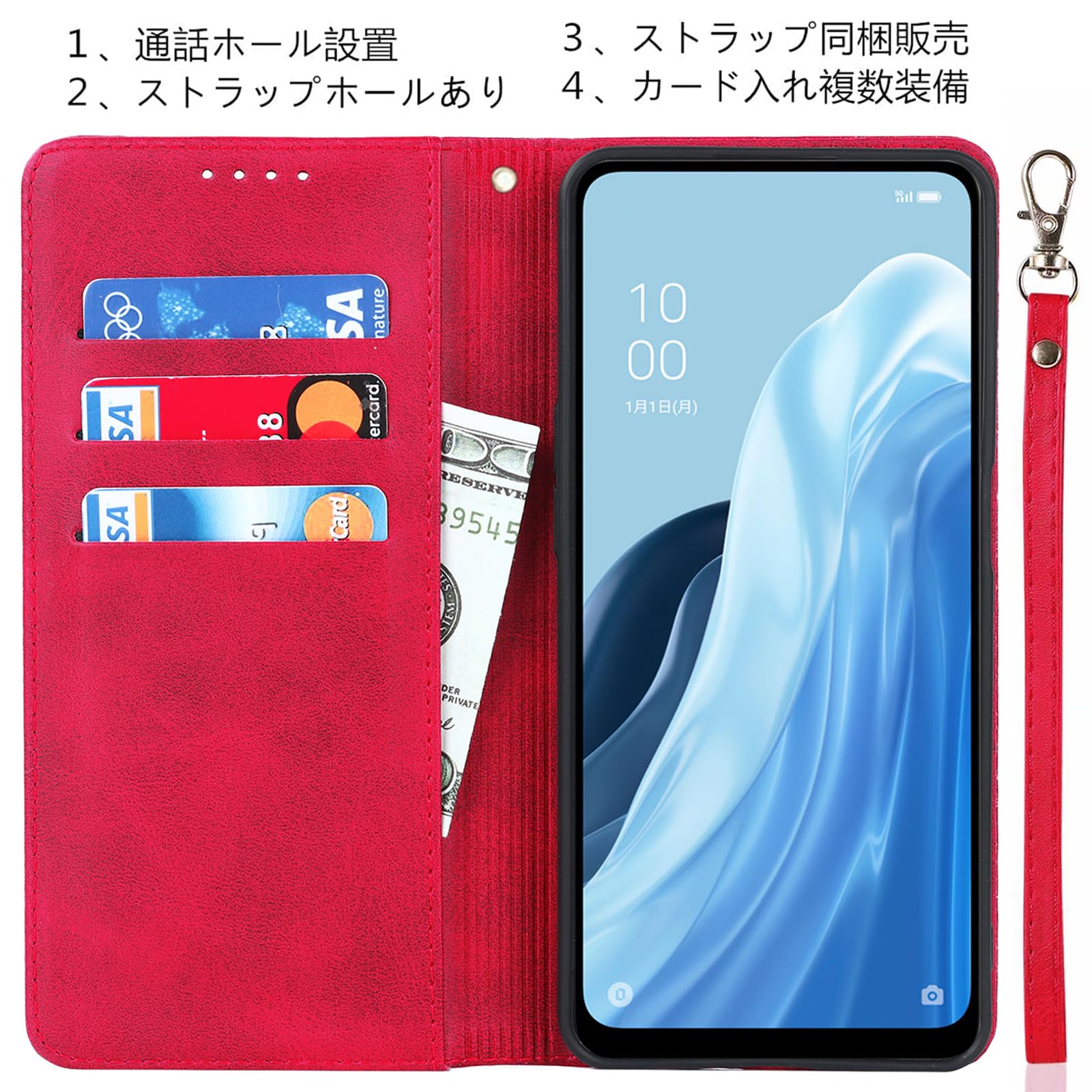 【素材】:鮮やかな色合いを避けて落ち着いたPUレザーを採用し、汚れにくくて触感が優しい素材です。インナーケースは柔軟なTPUホルダーです、装着が簡単で本体を傷つける心配はありません。衝撃吸収機能も良くて、しっかりと端末を守り抜きます。ストラップ同梱販売:素材はケースと同じのPUレザーで、カラー別の専用ハンドストラップです、先端はシルバー色のフック式で取り付け易くて実用性が高いのです。ストラップの長さ:約18.5cm。