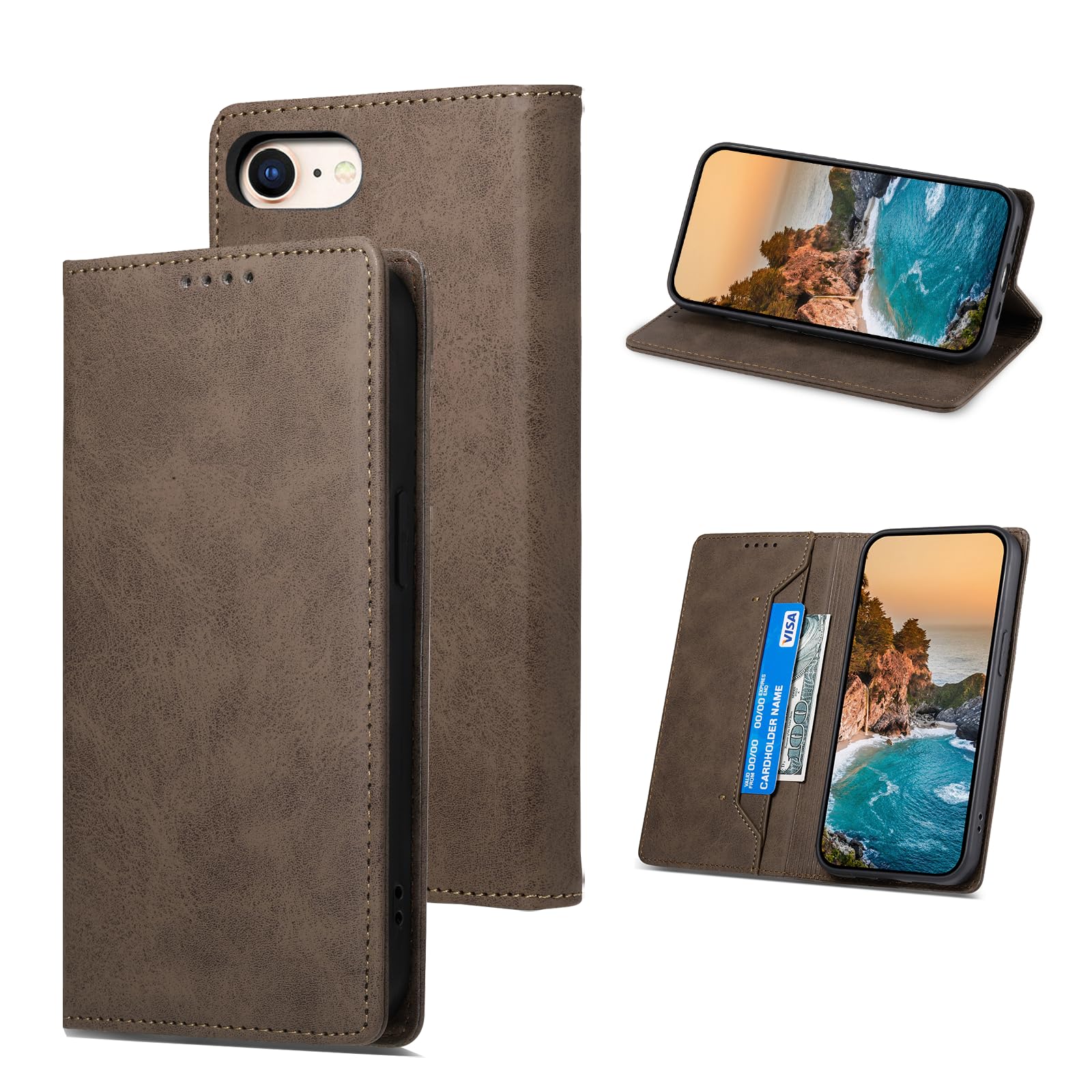 iPhone SE ケース 手帳型 iPhone SE 第3世代 第2世代 iphone8 iphone7 耐衝撃 手帳型 スマホケース携帯カバー レザー 軽量 薄型 耐摩擦 全面保護 マグネット式 カード収納 スタンド機能 se 4.7インチ対応 EUMADOVE (Brown iPhone SE3/SE2/7/8)