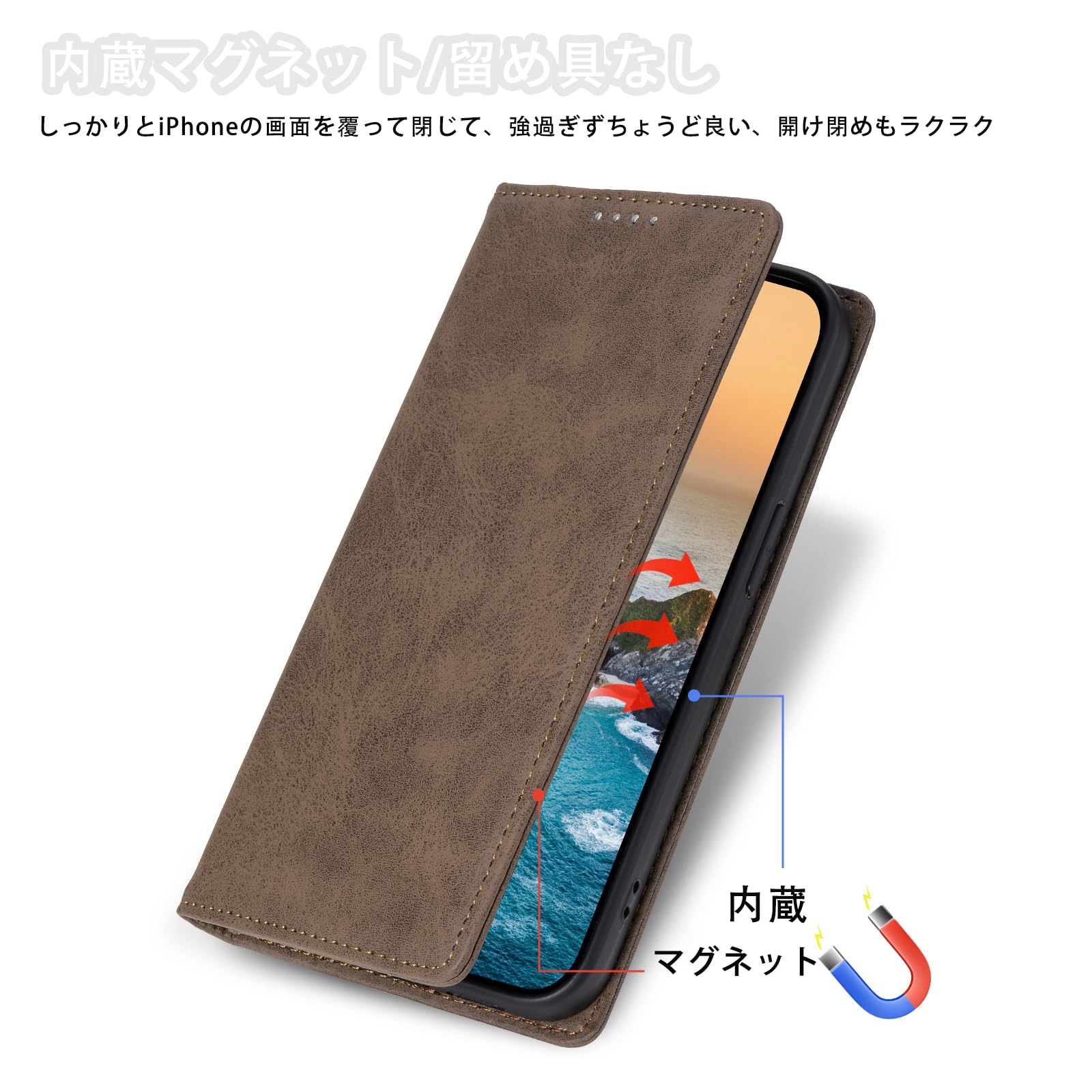【携帯電話をしっかり保護】:アウターケースは高品質な合成皮革(PU)製で、耐熱性、耐衝撃性に優れ、手触りがよく、ホコリや汚れを寄せ付けません。 ケースの内側は耐衝撃性に優れたTPUソフトシェルを採用し、着脱が簡単で、携帯電話本体の滑りや傷を防ぎ、衝撃から360°保護します。