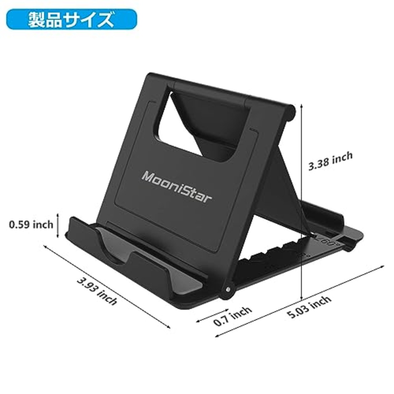 【持ち運びしやすい】:ポータブルタブレットスタンドのサイズは「5.03 inchx 3.93 inchx 3.38 inch」で、折りたたみ可能で持ち運びしやすい。