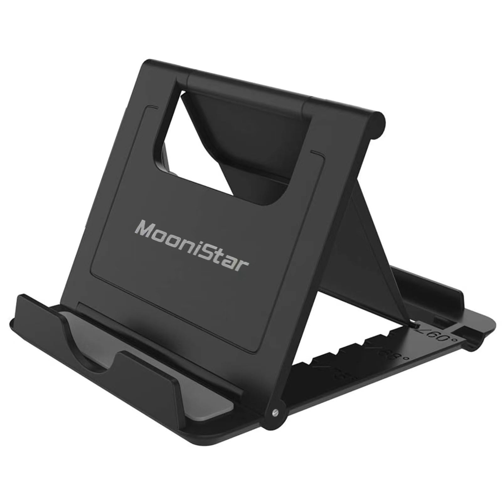 MooniStar タブレットスタンドはipadそして、15.6/18.5インチなどモニターに適用、折りたたみ式、角度調整可能、タブレットやスマートフォン両用、4.7''~15.6''まで多機種対応、持ち運びに非常に便利です.