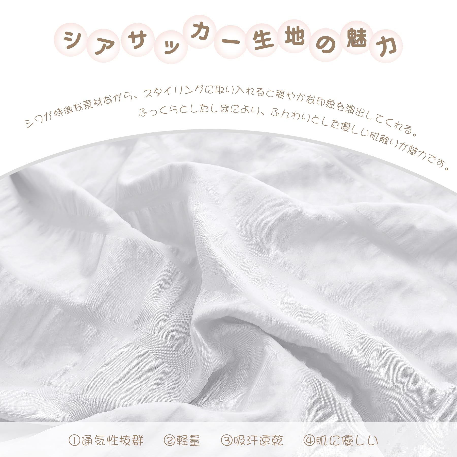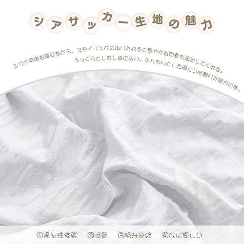 布団カバー 【シアサッカー生地 ホスール(HOSUR) 】 寝具カバーセット ピーチスキン加工 掛け布団カバー ボックスシーツ 枕カバー 優しい肌触り柔らかい 速乾タイプ 洗い替え(オリジナルホワイトシングル・3点セット)