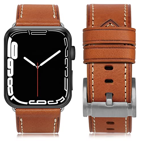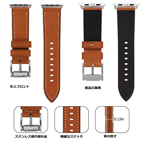 [ANGKMA] Apple Watch 用バンド42mm41mm 40mm 38mm 本革 交換ベルト Apple Watchシリーズ 11/10/9/8/7/6/5/4/3/2/1/Ultra対応 (38mm40mm41mm42mm ブラウンストラップ/シルバーバックル)