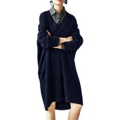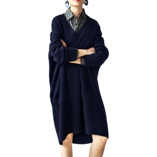 [Guooryvner] グオーリーブナー セーター ニット レディース vネック 秋 冬 セーターワンピース 長袖 チュニック トップス ゆったり ロング 膝丈 大きいサイズ オーバーサイズ ニットせーたー オフィス おしゃれ 厚手 着痩せ 通勤