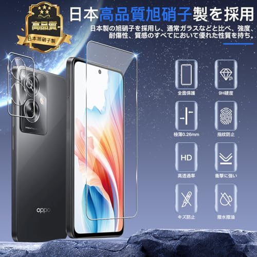 用 OPPO A79 5G ガラスフィルム 2枚+ カメラフィルム 2枚【2+2枚セット 日本旭硝子製】 用 OPPO A79 5G フィルム 液晶保護フィルム用 OPPO A79 強化ガラス レンズ保護フィルム ケース 9H硬度 全面保護 耐衝撃 飛散防止 高透過率 超薄型 指紋認証対応 自動吸着 貼り付け簡単 気泡防止 指紋防止 (For OPPO A79 5G)