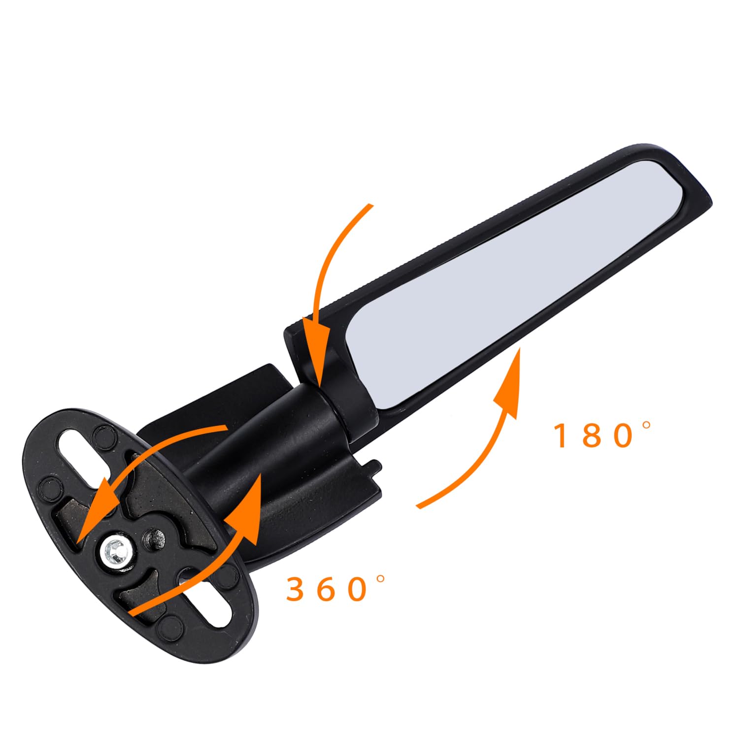 ミラー先端は180度調整可能。根本部分は360度調整可能。お好みの角度に簡単に調整できるバックミラー。車検非対応。視界が狭いためレース、ディスプレイ用のカスタムパーツです。