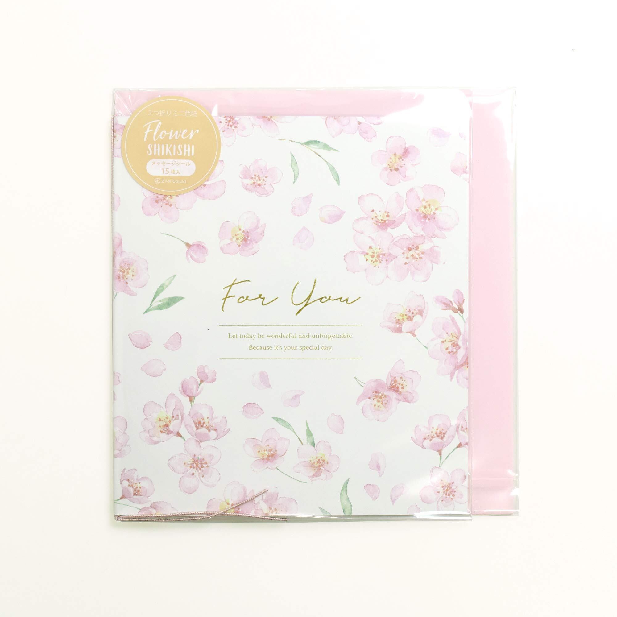 二つ折りミニ色紙フラワー メッセージシール15枚入 寄せ書き ゼットアンドケイ (さくら)
