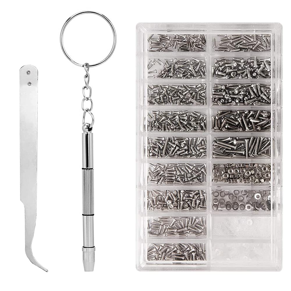 小ネジキット ステンレス 小ネジ パーツ ナット 小ネジセット ネジの交換 修理キット メガネ修理 腕時計修理 コンピュータ用ネジ&ナットセット 1000個入り