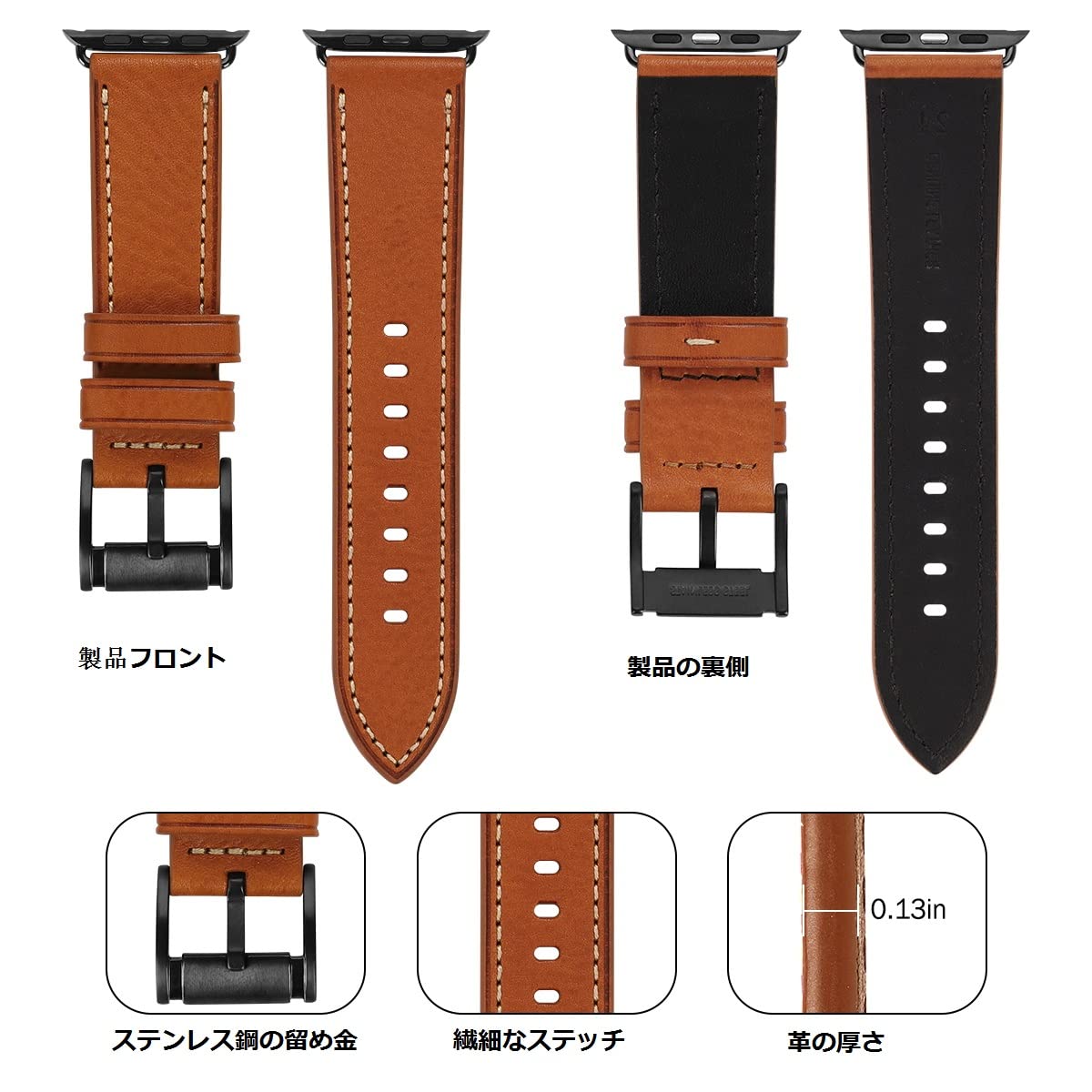 [ANGKMA] Apple Watch 用バンド49mm46mm 45mm 44mm 42mm 本革 交換ベルト Apple Watchシリーズ 11/10/9/8/7/6/5/4/3/2/1/Ultra対応 (42mm44mm45mm46mm49mm ブラウンストラップ/ブラックバックル)