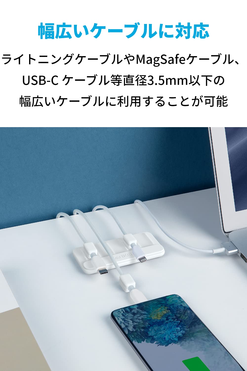 Anker Magnetic Cable Holder マグネット式 ケーブルホルダー ライトニングケーブル USB-C Micro USB ケーブル 他対応 デスク周り 便利グッズ (ホワイト)