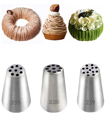 YFFSFDC 絞り口金 モンブラン絞り器 モンブラン口金 製菓用品 ステンレス フラワー リフター ケーキデコレーション ベーキングツール(3個セット)